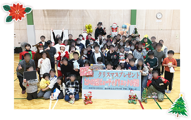 2025年12月25日(木)、児童養護施設「鐘の鳴る丘 少年の家」を訪問し、子供たちへクリスマスプレゼントとケーキをお届けしました。